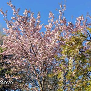 1️⃣2️⃣ 朝チロ助手と一緒に斜面にも 下りました🚶🐈️🐾🐾 上の庭からもなかなか上手く 写せない鬱金桜を写そうと… やっぱり見辛いかな…? 「今日のお花」の 木蓮も写りました 私が 水木周りのサークルベンチに 腰掛けたので チロ助手は水木の根っこの上に😸 その足元にも松前桜のお花が…🩷