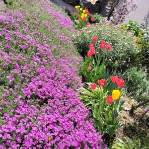 桜のような形の小さな花~芝桜🌸 💮白、ピンクに紫等…色~いろいろ🎶💞 ✨️近くのお友達の庭…🌱🌸