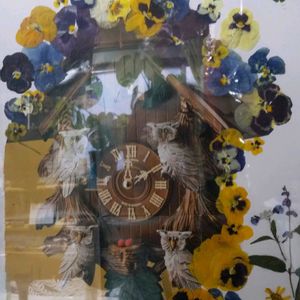 🏷️フクロウ祭り🎶🎶🎶大きな写真に、押し花を貼りましたよ😀