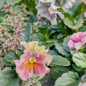 ビオラレディ💃✨ 一株から、実に様々な色合いのお花が咲いています🌈🎉✨ 本当に美しく不思議なビオラです✨ 手前の班入りタイムとの相性も良く、とても優雅に咲いておられます🥳✌️