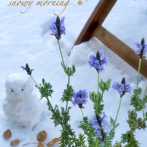 今朝、カーテンを開けたら真っ白❄️🫧 雪だるまを作ってみたら写真に撮りたくなって、お部屋で冬越し中のレースラベンダーを横に置いてパチリ📷💕 雪の上のラベンダーが意外にも綺麗で、雪だるまが「オマケ」になっちゃいました☃💦 氷点下7℃の中、寒すぎて適当ににぎにぎした、いびつな即席雪だるまさん💦 仕方ないかぁ😂 寒波はまだ続きそうです❄️ 大雪、凍結等、気をつけてお過ごしください。。