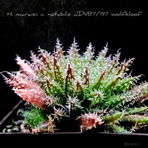 H.maraisii v. notabilis JDV87/197 wolfkloof 外葉が枯れはじめてなんか綺麗になってる。 鉢を大きくしてあげたらもっと大きくなるんでしょうけど・・・置く場所が再び無くなってきた。 現在5×5×5の角プラ鉢