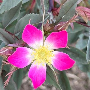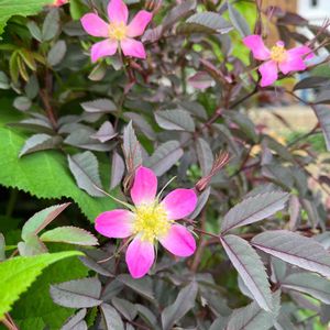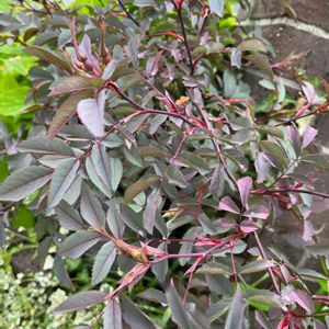 ロサグラウカ 別名ロサルブリフォリア 銅葉と赤枝が美しい原種系のバラ 春は一重のピンクの花が咲き 秋には真っ赤な実がなるそうです 以前から気になっていましたが 昨日寄ったドラッグストアの店先の 花苗コーナーにいました😳しかもワンコイン なんということでしょう… 出会えて良かった🫶🫶