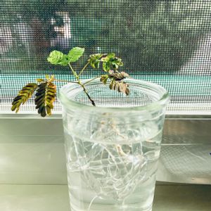 実家のミモザの種が飛んで、別のところから新しい芽が出てきていたのでもらってきました。 根っこがちょっと出てきたところ。新しい葉もようやく開いて、次の葉っぱが出てきそうです。 早く植え替えたいけど、成長する可愛い根っこも眺めていたい。 ((´艸`*))❤️