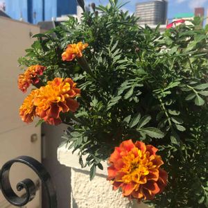 見てみて〜😊マリーゴールド全開🧡❤️💛いい天気でお花も緑も気持ち良さそう😌