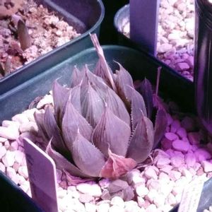 ハオルチア(旧氷砂糖)です。 旧氷砂糖は10000lux以上あると日焼けしてしまい、葉色が汚くなってしまうよう。今は7000lux(5000lux以上10000lux未満)くらいの場所で栽培中です。。 葉色的には綺麗になりました。これからの生長に期待です。。