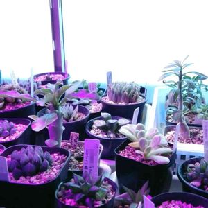 ハオルチア(べヌスタ)です。 我が家の御神体^^ 育成灯の照明色だったので撮り直したの。紅葉したのか日焼けしたのか全体的に赤味を帯びています。どんな風に生長するのかが、それだけが楽しみです。 水を欲しそうにしてますね^^; 最短1週間ペースの水やり。 幼苗の場合や成苗も傷がつくとちょっとした水やりでぐちょぐちょに水状化してしまいますよね。ハオルチアも少しずつ少しずつ生長するタイプで突然伸びたりすると根腐れしている事がよくありますよね。 乾かし気味の意味がイマイチわかりませんが、水やりから次の水やりまでに土が乾燥した期間が長く水やり自体も少量と言う感じ。この土は余分な水分や栄養分は土側に吸着するので比較的長く同じ環境で栽培できます。加えてソフトシリカ・ミリオンを加えていて水が腐りにくいです。。 初upから2ヵ月、、少しずつ少しずつ生長しています。水やりには栄養分としてハイ・アトニックを1000倍ほど入っていますが、夏場は3〜4日で水やり出来ましたが(温度管理した環境)、今は1週間で様子見です(湿度管理した環境)。半月に1度くらいが理想ですが、大株になって株が安定しての話か。そうでないうちは水やりや植え替えなど不安定な状態になりやすいですね。。 届いた時より少しぷっくりした感になったべヌスタ。楽しみです! Haworthia cooperi 'venusta', JDV94/5, Alexandria