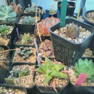 ハオルチア(♂[?]べヌスタN1×♀[?]巨大赤線レンズオブツーサ)です。 とうとう植え替え適期を逃してしまい? ダルマ葉というだけあってそれっぽくはなってきました!