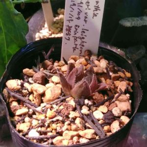 ハオルチア(レイトニー、JDV91/104 Erin park)です。 株分けからふた月色合いが赤っぽく(赤茶けたから)なりました。JDV91/97に比べると随分光がいるのかなどうかなというところでしたが、幼苗時点では10000luxくらいでこの状態。親株は群青色。この色合いを保ったまま大きくなるのかなどうなのかな?