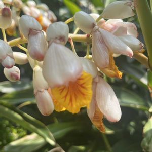 ✾ ゲットウ ✾ ショウガ科 ハナミョウガ属 月桃の花 しだれ咲く💛 こちらでは珍しいお花なので 実が熟すのも楽しみです(*^ー^)🟢〜🟠 🏷金曜日の蕾たち 参加させて下さい♬