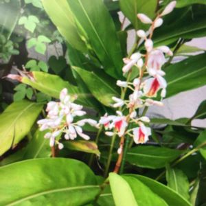 こんばんは😃🌃 只今の気温29℃まだ暑いねぇ~⁉️ (月桃の花) お出かけ先のお花で~す かわいい🎀お花にキュンです~♥️🤍💚 🏷️木曜は木の花に参加しま~す💖♥️💚🤍