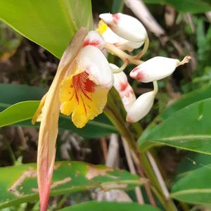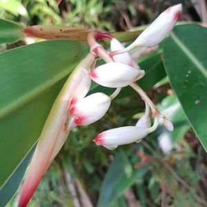 雨上がり、月桃の花が咲き始めました(*´∀`) うちの地域では、5月5日のチマキを笹の葉ではなく、月桃の葉を使ってチマキに作る家庭もあります。