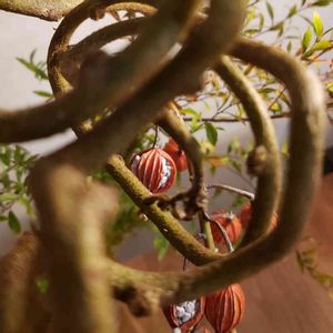 ぐるぐるの枝から見えるのは月桃の実。 明日の台風ができるだけ、太平洋側へと進路を向けることを願って。 天災は人災と云うひともいるけれど、自然の恵みを感謝しつつも、どうしても避けられないのも自然の怖さ。