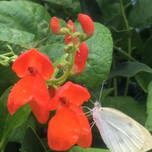 花豆の花 オレンジ色が鮮やか✨ 雨に濡れたモンシロチョウが 花豆の花に…