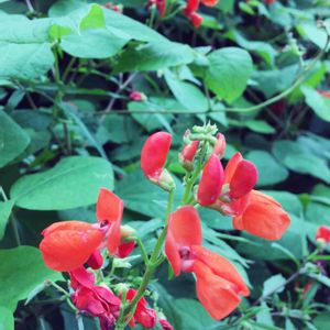ハナマメ(赤)🥰 農家さんが栽培している お豆の花🌸 緑の葉に映えて綺麗💕💕