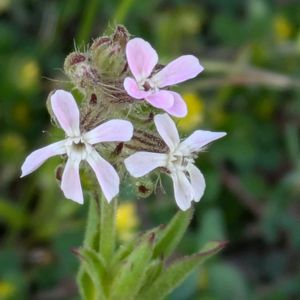シロバナマンテマ✨ 中~南ヨーロッパ原産の帰化植物。秋に芽生え、4月から5月に花を咲かせる越年草。植物体に触ると粘る。特に上部から花序にかけては白長毛とともに多数の腺毛がある。 マンテマに比べて花は地味であり、白から薄いピンク。遠目には開花に気づきにくい。埋立地などの沿岸域に多いとの事。 千葉県飯岡海岸(6/9)
