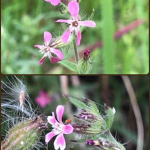 連投します。 シロバナマンテマ。 今年も同じ場所に会いに行ったら咲いていました。 嬉しいな😃 ピンクだけど、シロバナよ! 1cm以下の小さい可憐なお花です。