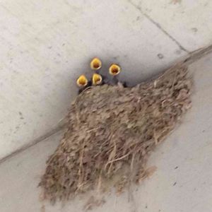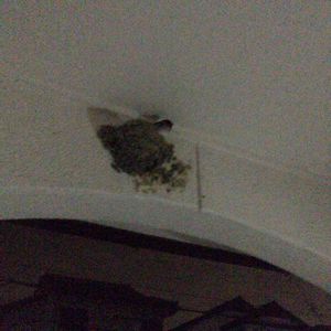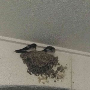 ツバメの巣 子供ができたみたいでメスだけが巣にいます(*^^*) たまに猫やカラスが来るから守ってあげなきゃね!