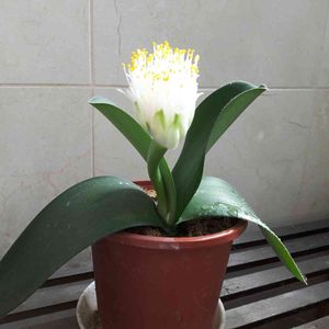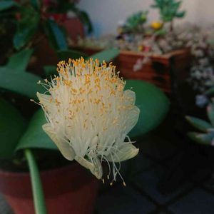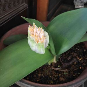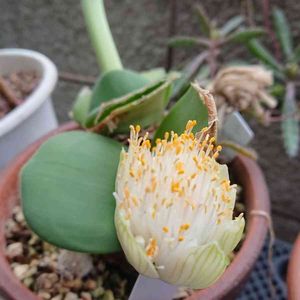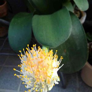 実家のマユハケオモト♫ 気がついたら急に花芽が出てきて開花してました〜😍 GSを始めて名前を教えて下さる方に辿り着くまで10年近く"謎の万年青" と呼んでいました。見れば見るほど力強くて不思議な魅力のある花です✨