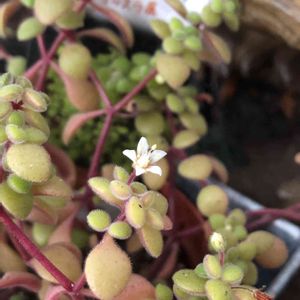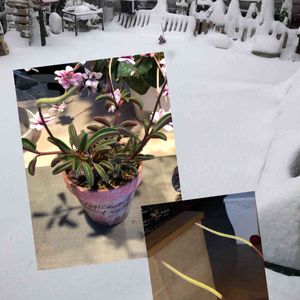 降った降った⛄️雪降った☃️ 今日一日で⛄️ 今我が家に咲いてる花はこのペペロミアの花だけ🌸お花地味だからピンクの鉢に植え替えてあげました❣️マッチ棒みたいだけど…花ね🌸😅