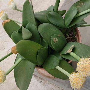 多肉お母さんに実験された!😱💦 マユハケさん💛💚❣️ 花芽が3つに増えました。 わぁー💕 嬉しい😃🎶