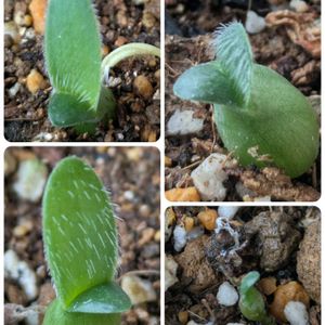 マユハケオモトの成長📝 種から育てるマユハケオモト 葉っぱ2枚 しっかりとしてきました 毛?も生えてます😄 白い種と へその緒みたいに伸びていた緑の棒 どちらも枯れて 役目を終えたようです 極小の一つが気になりますが スクスク組さんの3つ 頑張ってくれてます 💚👊💚👊💚👊💚👊