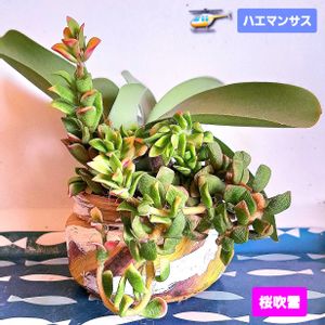 おはようございます😃🌤 桜吹雪🌸とハエマンサス🚁 @ キムチ容器鉢🖌️ 秋には寄せ植えからそれぞれ独立予定🏘️ よい一日を🐬.。o○🌈🌏