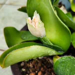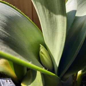 こんにちは。 カラッとした暑さで、過ごしやすい気候になりました。 久しぶりの投稿になります。 10年くらい前に、学生時代からの友達が分けてくれたマユハケオモト。 親株から分けたばかりの状態でお迎えしました。 今朝、ベランダに置いている観葉植物に水やりしていたら、花芽が伸びているのに気がつきました。 いつの間に⁉️ 昨年は咲かなかったので、うれしいっ😆