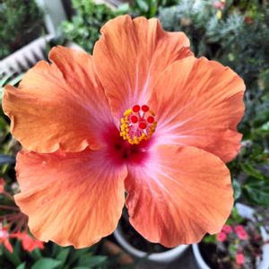おはようございます。 ハイビスカス🌺今年第1号です。 蕾が大きくなってた昨日は昼間咲くのかな〜って思っていたけど・・ 今朝、外に出たらきゃっ可愛い♥すごい存在感よね҉٩(*´︶`*)۶҉