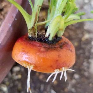 おはようございます 葉っぱが可愛いから水にさしておいた🥕 根が出てきたので 土のなかに入れます どうなるかな?