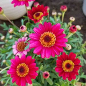 フラワーパークからお迎えした 深紅のマーガレット🎆200円でした👌 大きくなぁれ♡