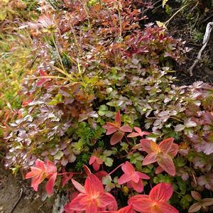 銀泉台 ハイオトギリ オトギリソウ科オトギリソウ属 草紅葉の中で 一番鮮やかで美しい~✴️ 初めて見て感動でした✨🍁✨ 2017/9/21 北海道 大雪山