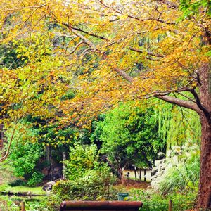 こんばんは いつもの植物園 池のほとりのベンチに 覆い被さるような桂の葉が 黄色く色付いて甘い香りを 漂わせています