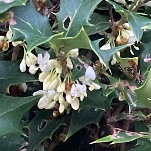 ヒイラギ💚🤍💚 甘い香りがすると思ったら😍 ご近所の会社の植込みで柊が咲いてました🥰