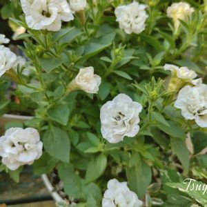 おはようございます。 白い小振りのペチュニア シャトー お迎えした時、咲いていなかったので やっと写真に撮れました。 八重と一重が混じってる感じかな? 可愛いホワイトです。 今日も良い1日になりますように✨
