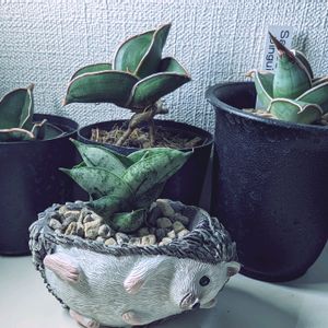 最近お気に入りのポチャ系サンスベリア(๑´ㅂ`๑)♡*.+゜ 向こうの3株、植え替えたいなぁ、どの鉢に植え替えようかな。 昨日買った子は「サンスベリア・エレンベルギー・サムライドワーフ」と認定しました、ご協力感謝です⸜(* ॑꒳ ॑* )⸝.。•♥︎