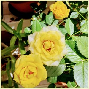 おはようございます🎶 うちのミニバラ、4つありますが、1つがまだ小さいですがお花が咲いてきました🌼 涼しくなってきたからこれからいっぱい咲いてくれるといいな😉 朝、ミニバラさんにおはようって声かけたら「おはよう、これからいっぱい咲くからお世話よろしくね」って😅 寒いけど頑張らないとね💦 今日も良い日でありますように💕