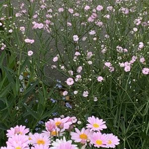 今日のお花 かすみ草 ピンクとホワイト咲きました ミニ薔薇も咲いてます🌹