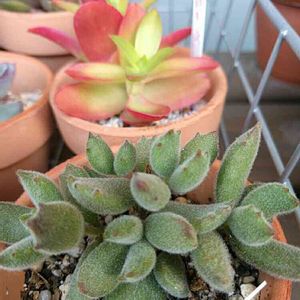 おはようございます☁☀ 今日もしっかり蒸し暑いです💦 昨日エキナセアを求めて行った園芸店で、もう一つ何か欲しい〜🎵と選んできたのがこの熊童子です😄 やっぱりモケモケ系は可愛い💕