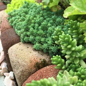 雨続きだったのに、青々と茂る地植えのセダムっ子たち😆