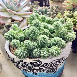 お友達からいただいた@3chobi.desさんの手描き鉢にマジョールを植えました😊✨ 鉢の模様がよく見えるように写真が撮れなかったので、ご興味のある方は、インスタで作家さんの投稿見てみてくださいネ😙✨