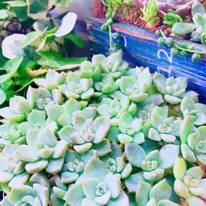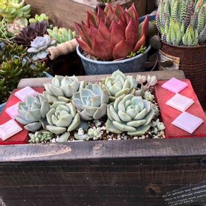 我が家の子宝草の保育園😊 ピンクの縁取りと肉厚がかわいい❤️ セダム畑の上で…🌱