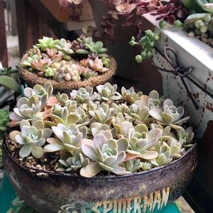 おはようございます☁️.*・゚ .゚・* 家に居る子持ち蓮華さん鉢の一つ💕スパイダーマンのサビ缶鉢♡夏に元気無くしてやっとここまで…… 流石✧*。スパイダーマンパワー♥️ありがとう(o^-^o)