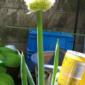 ネギ坊主 きれいね🤗 今日は7月並の暑さらしい😅 庭仕事、ちょっとひと息ついています😃