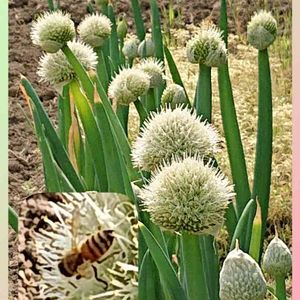 🍀義母の畑の葱坊主 🐝さん大忙し💦 あらためて🌼お花なんだなぁと思いました😆