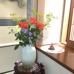 藤色の お花 ( ユーパトリウム ) だけは、うちの庭からで、 後は 今日は、お花屋さんで 久し振りに 買ってみました。 ☆ オミナエシ ☆ バラ🌹 4 本 ☆ 黄色のカーネーション 2本 ☆ ユーパトリウム ( 藤色 ) です。 今日は、亡くなった父 の お誕生日 だったので、お花を 買ってきました。 お酒🍶🍺は 何でも 良くって、チーズ🧀が 好きだった人です。 母は、全く お酒🍶 飲めなかった人なので、どうして 人は、こうして お酒を たくさん飲むんだろ う〜❓ と、たぶん ずっと理解できなかったと 、私は 思います。 チーズ と、日本酒は お供えしましたからね‼︎ 今日だけは、いっぱい 呑んでも 良いですよ❣️ (╹◡╹)