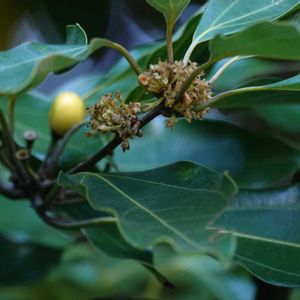 シロダモ クスノキ科シロダモ属の常緑高木 ・雌雄異株 ・秋に黄白色の小さな花を密集して つけます ・雌花の柱頭は先端が丸みを帯びて いて、ちょうど綿棒の先端のよう な外見をしているそうです。 地元のお山散策してみれば①の花、雄花を付けた雄株です。 ②③こちらは木が高く綺麗に撮影出来ませんでしたが、綿棒のような柱頭が見えているから雌花のようです②③は雌株です この花の開花時期は通常10月下旬から11月上旬です また、赤い実は前年に咲いた花が1年かかって成熟したもので、熟するのは同じく10月から11月頃です。 その為、雌株は晩秋の時期に花と赤い液果が同時に存在しているという特徴があります。 本来なら②③の花が付く木には赤い実があるはずですが、ありませんでした。 実の付きが悪かったのか? 鳥の餌となったのでしょうか? 今回赤い実が見つからなかったので、 ④昨年11月に東京上野で見たシロダモの赤い実を添えておきます。 今年、もしかして、ムクドリ、ヒヨドリ、メジロ、ツグミなど🐦さんのエサとなったのでしょうか? ⑤は、シロダモの葉裏は白色です。 だってシロダモン✨ そしてシロダモの葉は枝先に集まって付く様子も撮れました。 そして雌株なら普通花と赤い実が同じ時期に見られます ①の木と②③の木は別の場所で見ました 📷 ①2025/11/23 ②2025/11/11 ⑤2024/11/15