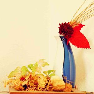 秋のオシャレサン 古道具屋さんにいたペンギン 目が合い連れ帰る(´∇`) 庭で揺れてたアイテムをちょこっと摘んで秋遊び