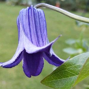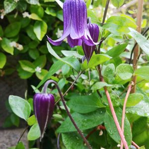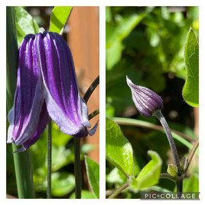 ロウグチがやっと咲きました💜 木立ち性クレマチス、インテグリフォリアとレティキュラータの交配種で、四季咲き性です。新梢の側枝に次々と青紫色のベル型の花が咲きます。花芯は黄色です。咲き終わった花を摘み取ると、次々に花を咲かせます。耐寒性、耐暑性が高い強健種で、生育が旺盛です。草姿は半木立性で庭植えに向きます。(ネットより)