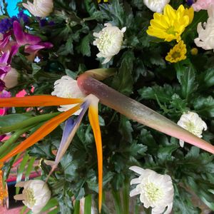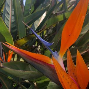 《美しい羽根を持つオレンジ色の花🌸》 南アフリカを中心に5種程度が分布する。 花は鳥の頭のような形をしているものがある🤗🌸 また、葉が美しく観葉植物として栽培される。バード(オブ)パラダイス、とも言う。学名の「ストレリチア」は、植物愛好家であったジョージ3世の王妃シャーロットの旧姓に由来している🤗
